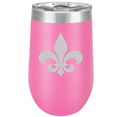 16 oz Double Wall Vacuum Insulated Stainless Steel Stemless Wine Tumbler Glass Coffee Travel Mug With Lid Fleur-De-Lis (Hot Pink)