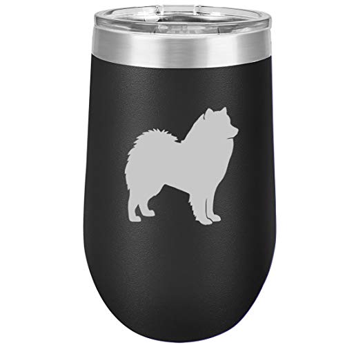 16 oz Double Wall Vacuum Insulated Stainless Steel Stemless Wine Tumbler Glass Coffee Travel Mug With Lid Samoyed (Black)