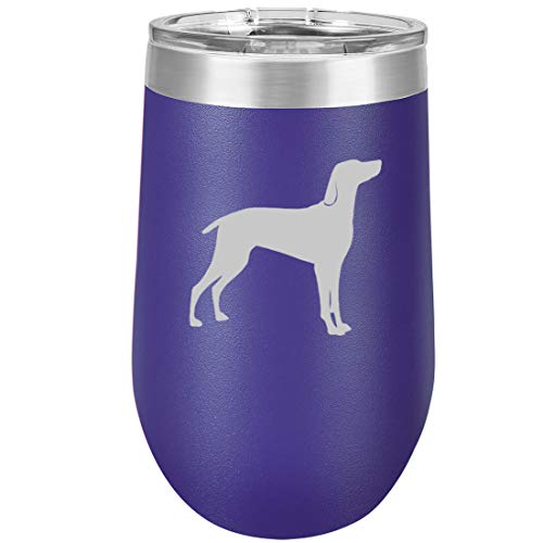 16 oz Double Wall Vacuum Insulated Stainless Steel Stemless Wine Tumbler Glass Coffee Travel Mug With Lid Weimaraner (Purple)