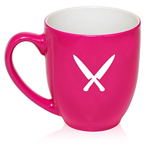 16 oz Large Bistro Mug Ceramic Coffee Tea Glass Cup Chef Knives (Hot Pink)