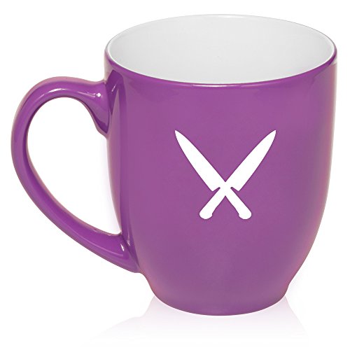 16 oz Large Bistro Mug Ceramic Coffee Tea Glass Cup Chef Knives (Purple)