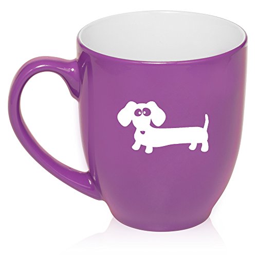 16 oz Large Bistro Mug Ceramic Coffee Tea Glass Cup Dachshund Cartoon (Purple)