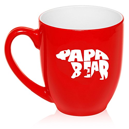 16 oz Large Bistro Mug Ceramic Coffee Tea Glass Cup Dad Father Papa Bear (Red)