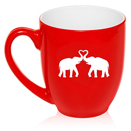16 oz Large Bistro Mug Ceramic Coffee Tea Glass Cup Elephants Making Heart (Red)