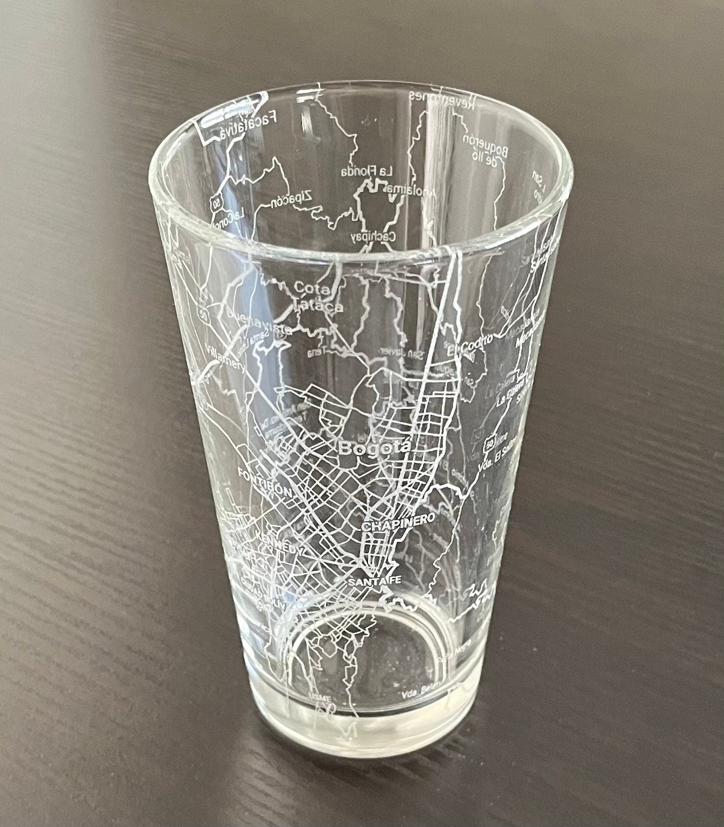 16 oz Pint Beer Glass Urban City Map Bogota, Colombia