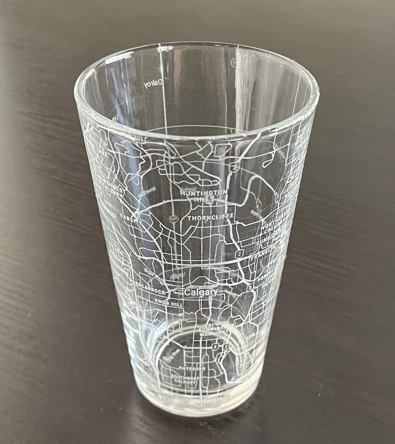 16 oz Pint Beer Glass Urban City Map Calgary, AB, Canada