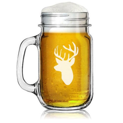 16oz Mason Jar Glass Mug w/ Handle Deer Head With Antlers Hunting
