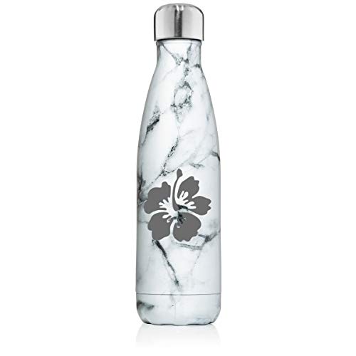 17 oz. Double Wall Vacuum Insulated Stainless Steel Water Bottle Travel Mug Cup Hibiscus Flower (Black White Marble)