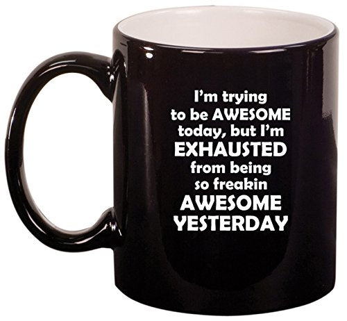 Ceramic Coffee Tea Mug Cup Exhausted From Being Awesome (Black)