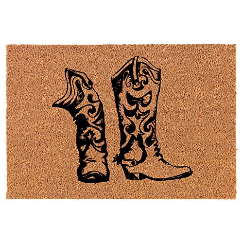 Coir Doormat Front Door Mat New Home Closing Housewarming Gift Cowboy Cowgirl Boots (24" x 16" Small)