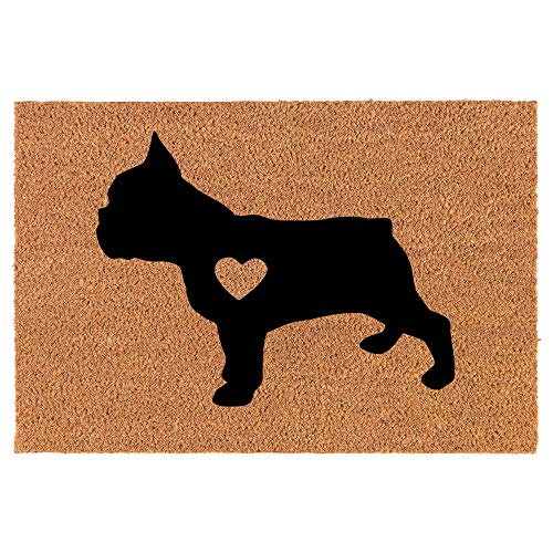 Coir Doormat Front Door Mat New Home Closing Housewarming Gift Cute French Bulldog Frenchie with Heart (24" x 16" Small). 100% coir pile with rubber non slip backing. Great for housewarming, newylwed, wedding or new home purchase gift. To prolong the life of your mat keep in a sheltered area. To clean simply shake out