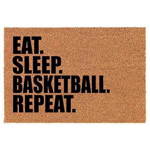 Coir Doormat Front Door Mat New Home Closing Housewarming Gift Eat Sleep Basketball Repeat (24" x 16" Small)