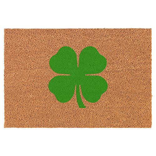 Coir Doormat Front Door Mat New Home Closing Housewarming Gift Green 4 Leaf Clover (30" x 18" Standard)
