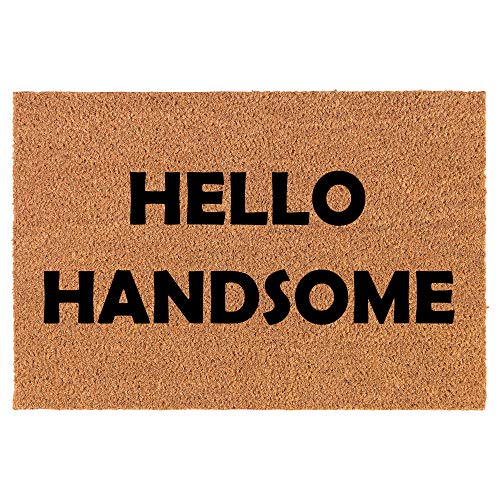 Coir Doormat Front Door Mat New Home Closing Housewarming Gift Hello Handsome (24" x 16" Small)
