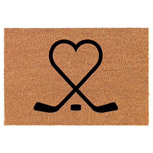 Coir Doormat Front Door Mat New Home Closing Housewarming Gift Hockey Sticks Heart Love (24" x 16" Small)