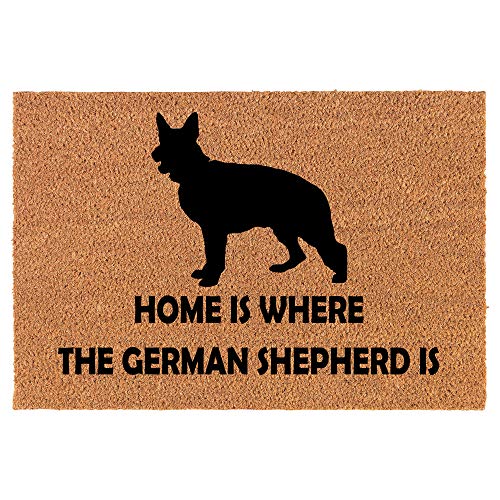 Coir Doormat Front Door Mat New Home Closing Housewarming Gift Home is Where The German Shepherd is (24" x 16" Small)