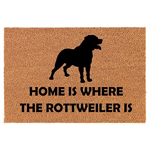 Coir Doormat Front Door Mat New Home Closing Housewarming Gift Home is Where The Rottweiler is (24" x 16" Small)