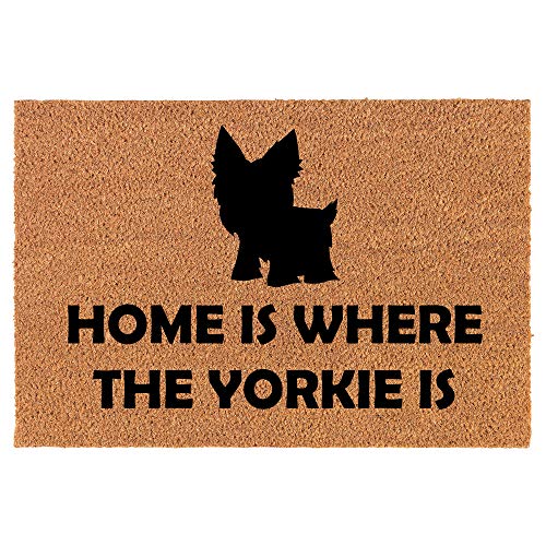Coir Doormat Front Door Mat New Home Closing Housewarming Gift Home is Where The Yorkie is (30" x 18" Standard). 100% coir pile with rubber non slip backing. Great for housewarming, newylwed, wedding or new home purchase gift. To prolong the life of your mat keep in a sheltered area. To clean simply shake out