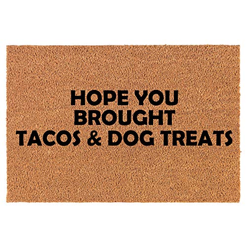 Coir Doormat Front Door Mat New Home Closing Housewarming Gift Hope You Brought Tacos & Dog Treats Funny (24" x 16" Small). 100% coir pile with rubber non slip backing. Great for housewarming, newylwed, wedding or new home purchase gift. To prolong the life of your mat keep in a sheltered area. To clean simply shake out