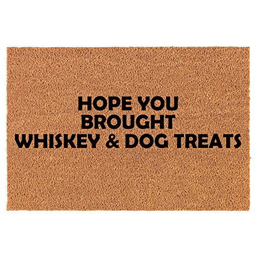Coir Doormat Front Door Mat New Home Closing Housewarming Gift Hope You Brought Whiskey & Dog Treats Funny (30" x 18" Standard). 100% coir pile with rubber non slip backing. Great for housewarming, newylwed, wedding or new home purchase gift. To prolong the life of your mat keep in a sheltered area. To clean simply shake out