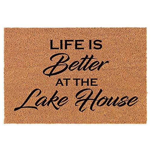 Coir Doormat Front Door Mat New Home Closing Housewarming Gift Life is Better at The Lake House (24" x 16" Small)