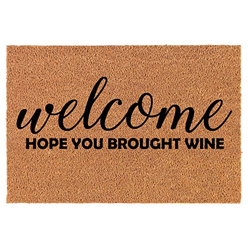 Coir Doormat Front Door Mat New Home Closing Housewarming Gift Welcome Hope You Brought Wine Funny (24" x 16" Small)