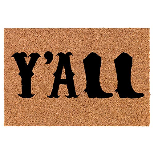 Coir Doormat Front Door Mat New Home Closing Housewarming Gift Y'all Boots Country Cowgirl (30" x 18" Standard)