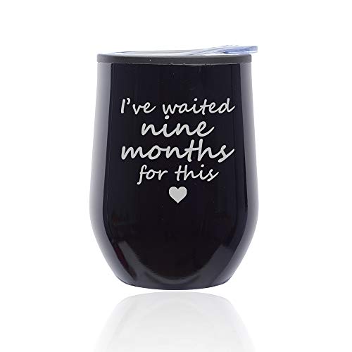 Stemless Wine Tumbler Coffee Travel Mug Glass With Lid I've Waited Nine Months For This Funny New Mom Baby Shower Push Present Mother (Midnight Black)
