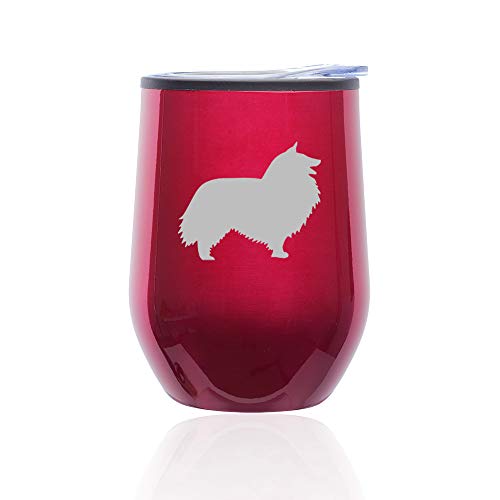 Stemless Wine Tumbler Coffee Travel Mug Glass With Lid Shetland Sheepdog (Fuchsia)